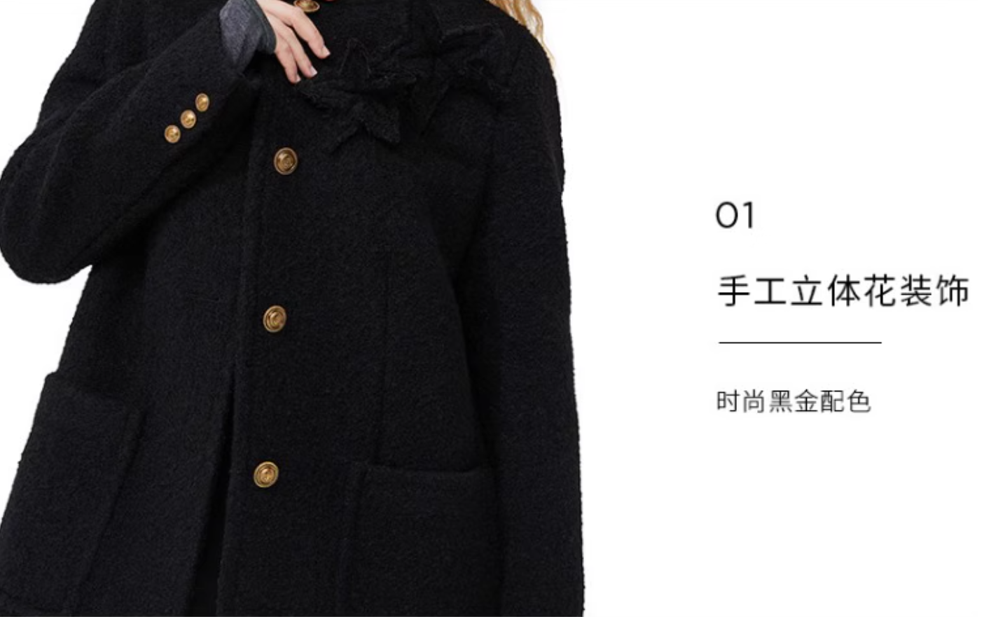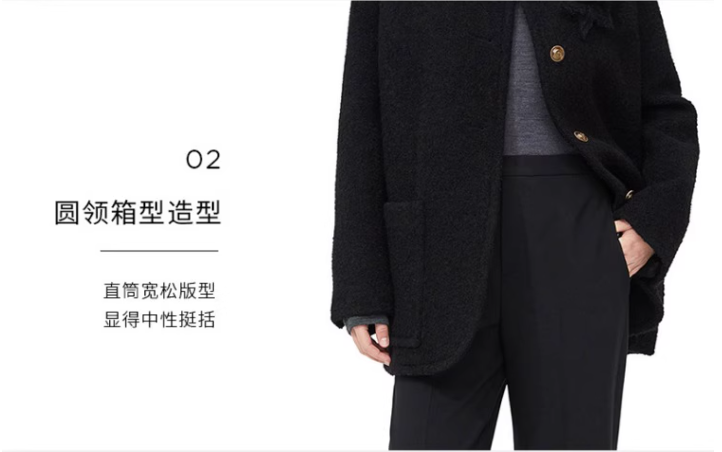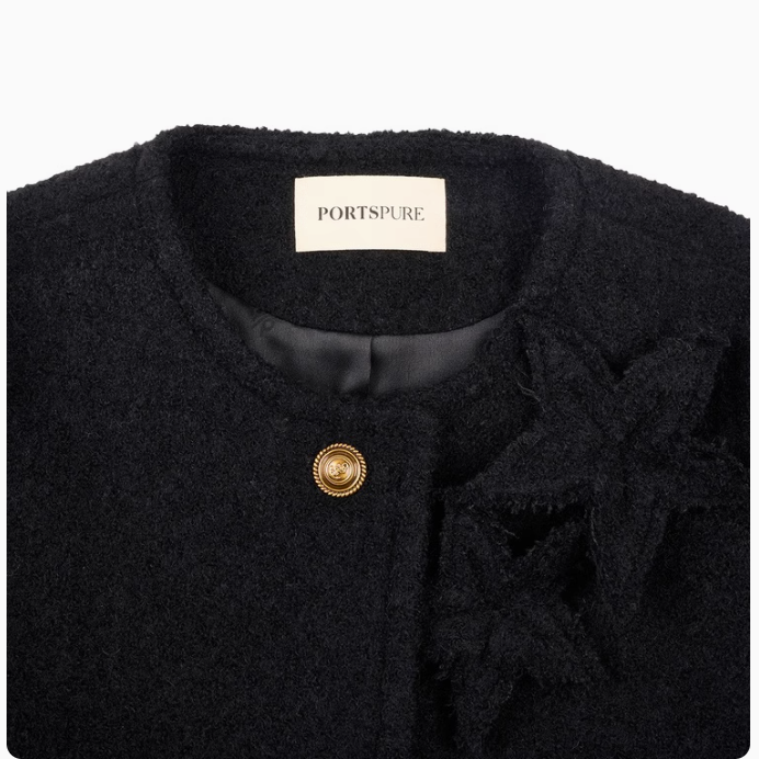 宝姿PORTSPURE女装时尚简约清冷智性立体花毛呢外套