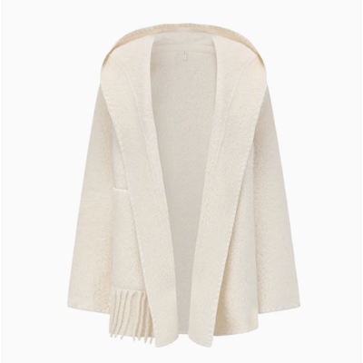 气质休闲女装时尚复古潮流毛呢明线流苏连帽大衣外套