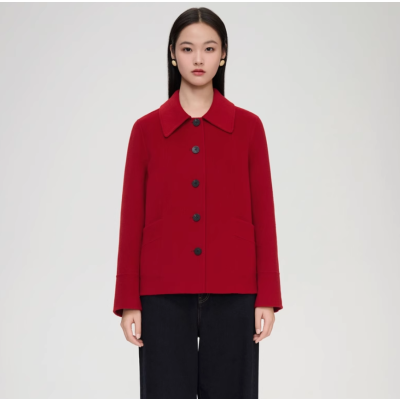 VGRASS新年红色真丝羊毛呢外套女冬季新款简约双面羊毛大衣短外套
