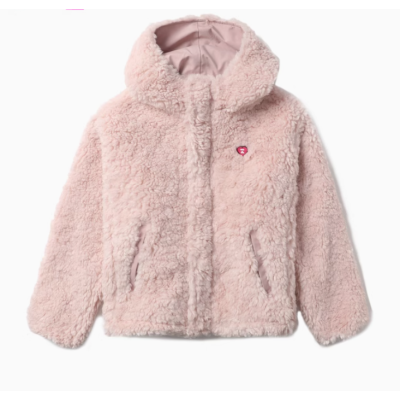APEE女装秋冬撞色猿颜爱心刺绣毛绒连帽夹克外套