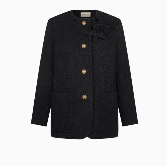 宝姿PORTSPURE女装时尚简约清冷智性立体花毛呢外套